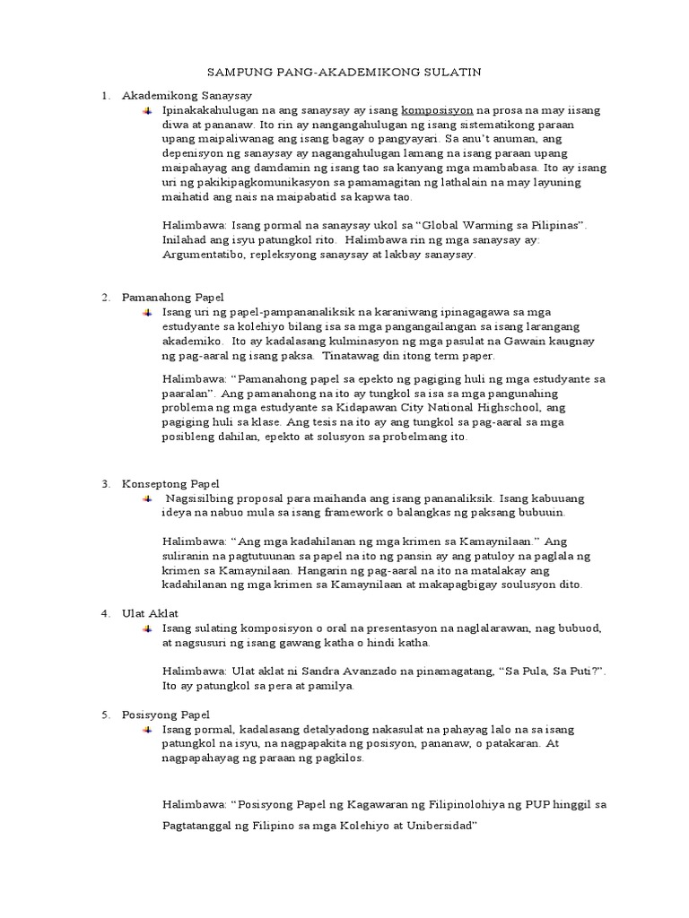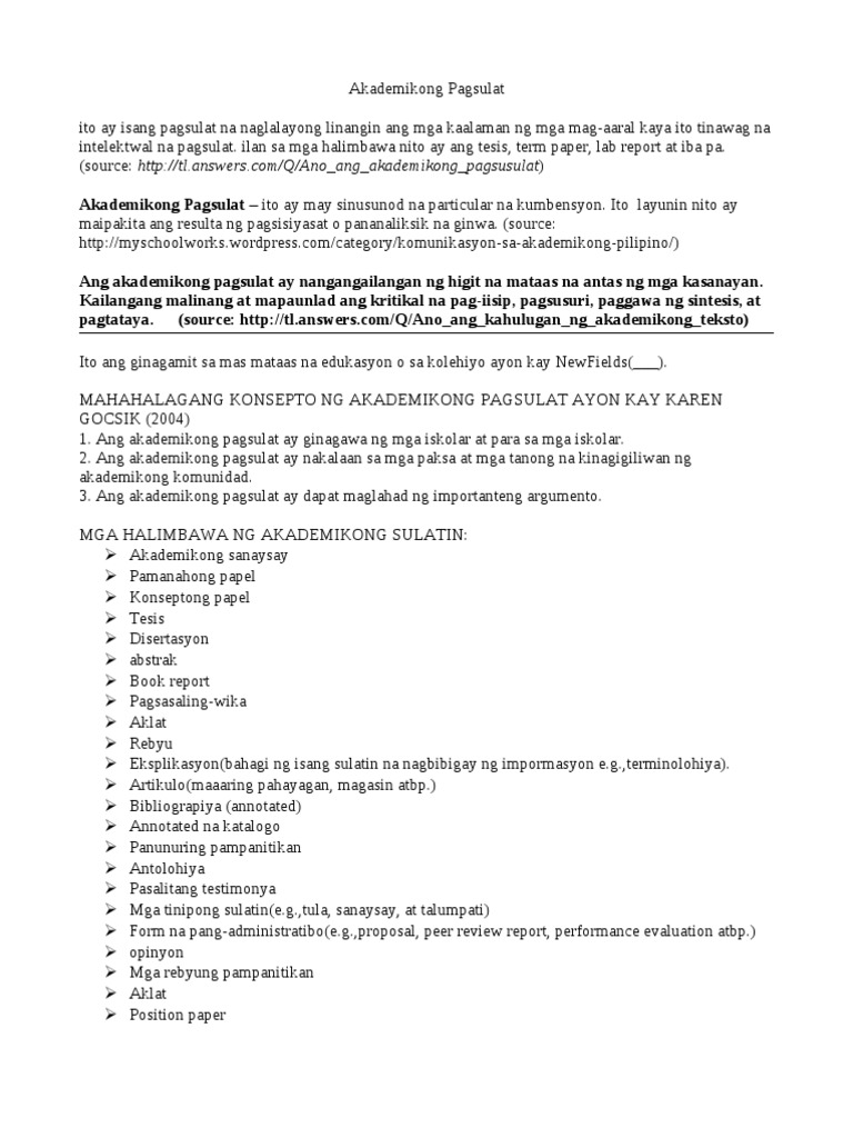 Akademikong sanaysay halimbawa - Mga Halimbawa ng Akademikong Sulatin Ulat ng. Sub-dibisyon -Pinanandaan ng bilang arabiko 12345 Mga Halimbawa.